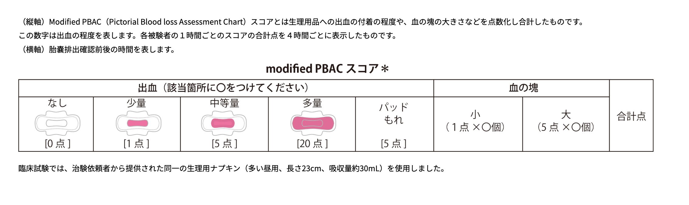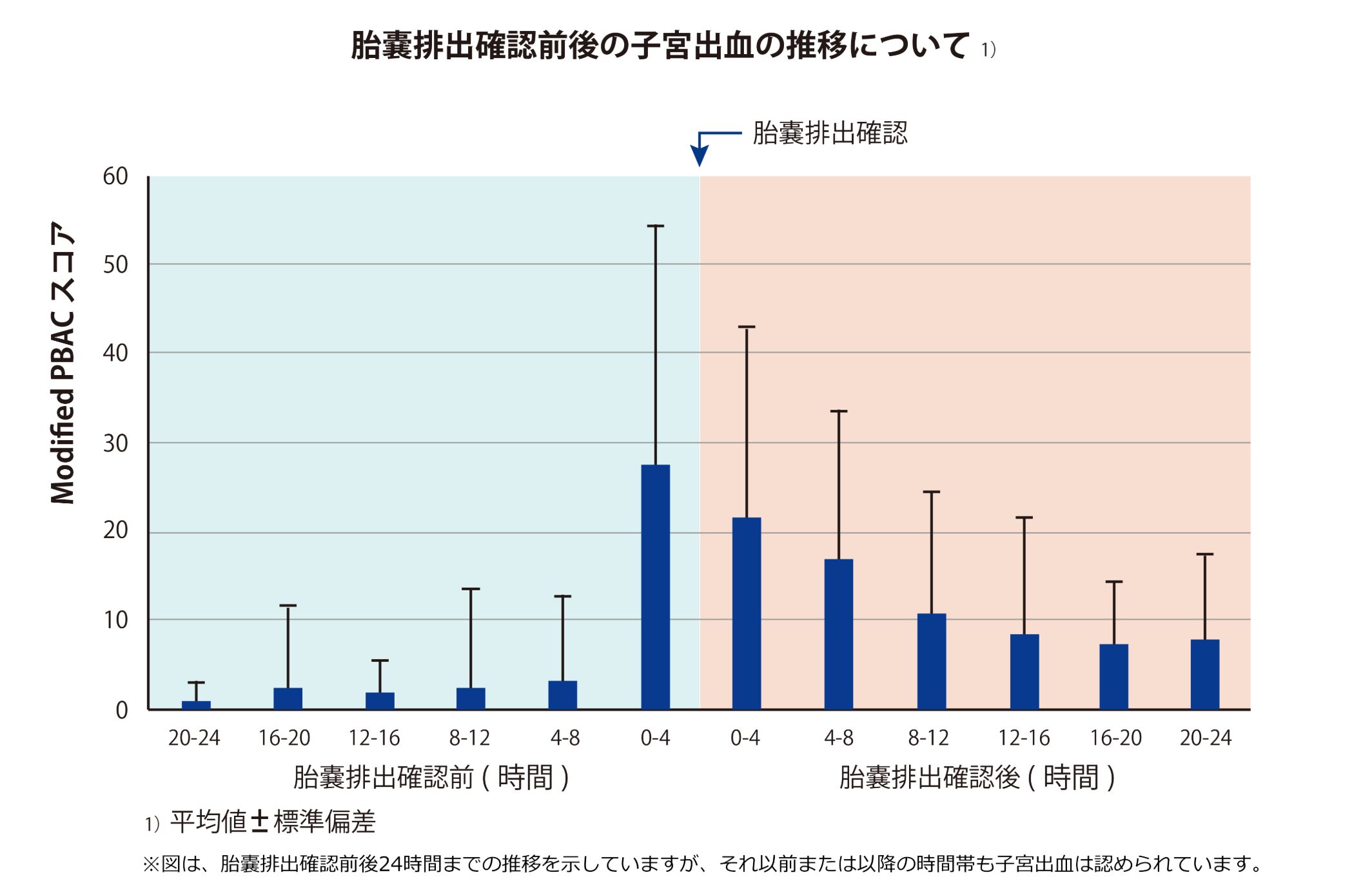 臨床試験では、胎嚢排出確認前4~8時間の出血量は少なく、胎嚢排出確認前0~4時間では最も多くなりました。胎嚢排出確認後、出血量は徐々に減少しました。